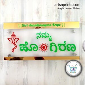 Beautiful Kannada Acrylic Name Plate with Ganesh motif | Frosted Design | All over Karnataka Delivery