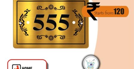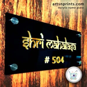 A bold black-and-gold name plate inspired by Goddess Lakshmi, crafted to attract prosperity, positive vibrations, and a striking entrance presence.