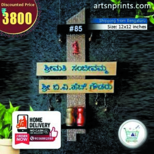 “Designer Wooden Name Plate with Kannada Font & Hanging Bells | Shop Now nearby AMS Layout”